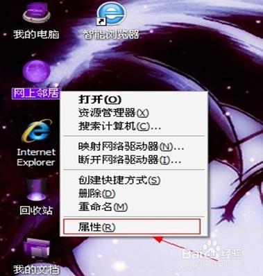 步骤一:右键点击‘网上邻居’,对话框选择“属性”: