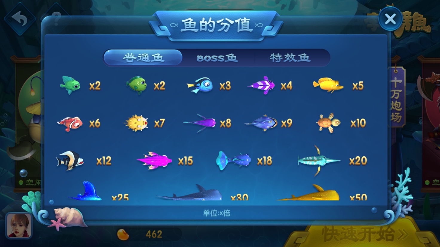 50倍以上的就是大鱼了,倍数高意味着血量也高,打起来除了技巧,还要加点运气。不管你信不信,捕鱼也要靠玄学,有时莫名就当了捡漏王。