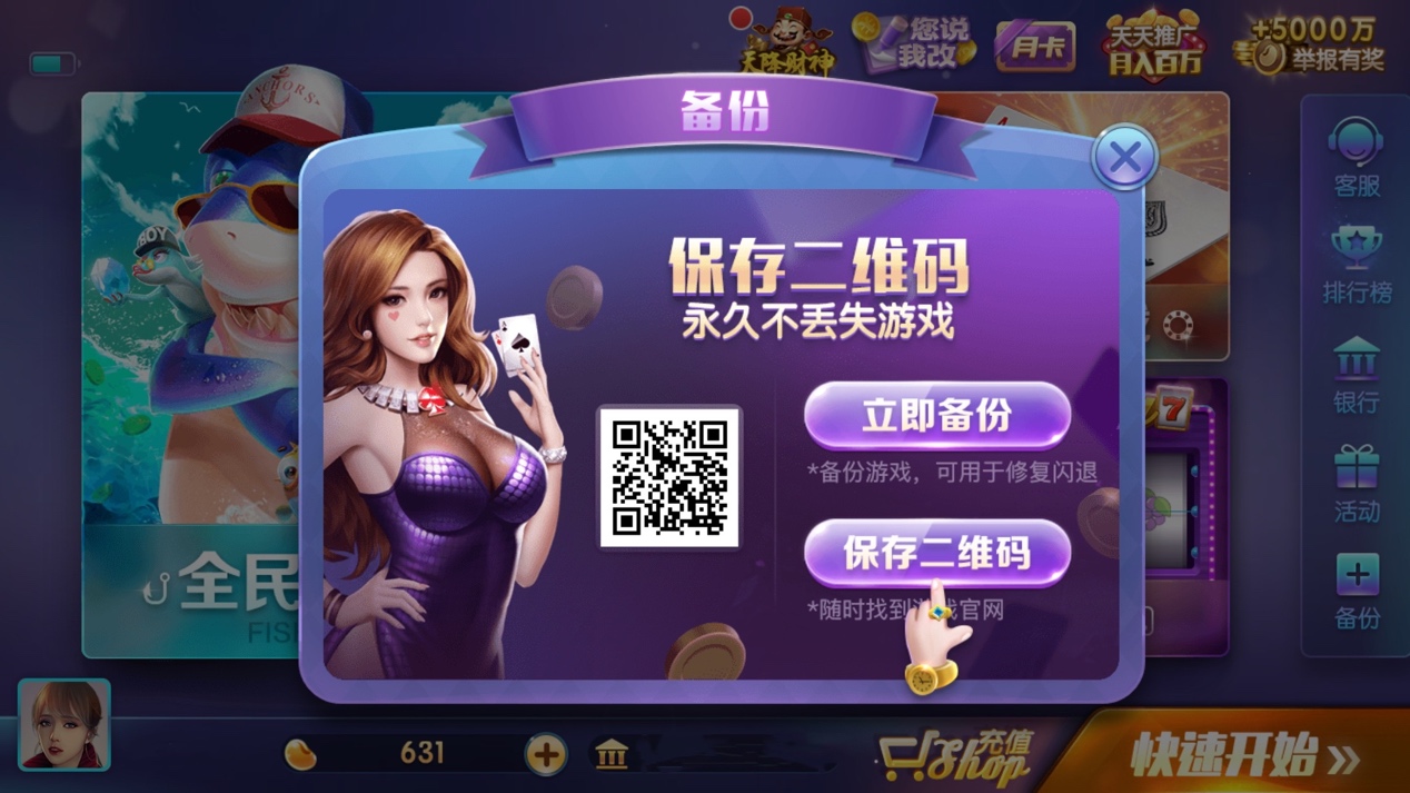 一言首页——点击右下角“备份”——点击“保持二维码”,永久不不丢失游戏。